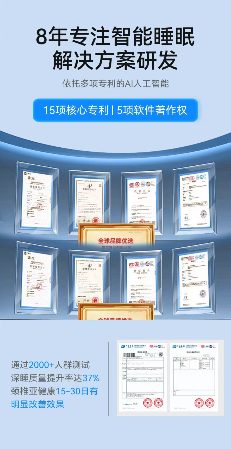 “它更像一个睡眠管理师,而非普通寝具。”一位体验店店员介绍。产品背后是15项专利与5项软件著作权的技术支撑,试图通过主动干预,为入睡创造生理条件。