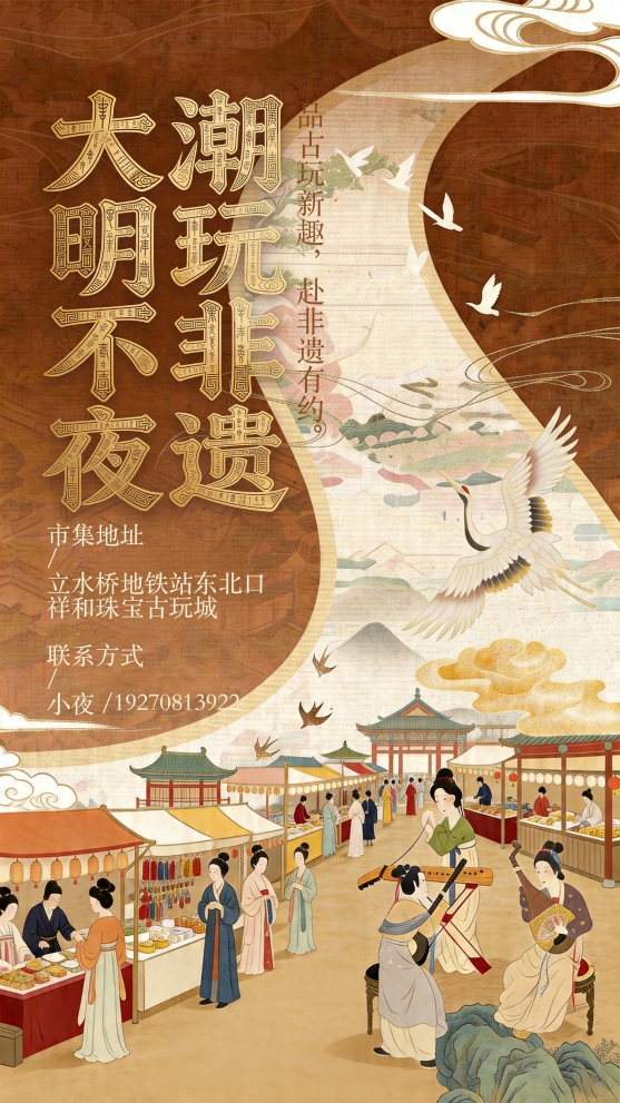 在京城中轴延长线北端、日均百万级通勤人流的立水桥地铁站枢纽地带,一座融合“数字科技+非遗文化”的沉浸式市集——祥和古玩城“大明不夜·潮玩非遗”市集,将在五月正式启动,首期多席黄金铺火热招商中。